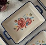 تابه زیبای دو دسته سرامیکی با گل‌های خوشرنگ، ترکیبی از هنر، ظرافت و کاربرد را در کنار هم به آشپزخانه شما می‌آورد. طراحی گل‌دار این تابه با رنگ‌های ملایم و چشم‌نواز، آن را به یک انتخاب خاص برای سرو غذا، دسر یا حتی استفاده در دکور تبدیل کرده است. دسته‌های سرامیکی مقاوم، علاوه‌بر زیبایی، حمل آن را آسان و ایمن می‌کنند. این تابه نه‌تنها یک وسیله کاربردی است، بلکه حس لطافت و زیبایی را به میز غذا یا پذیرایی شما می‌ باشد