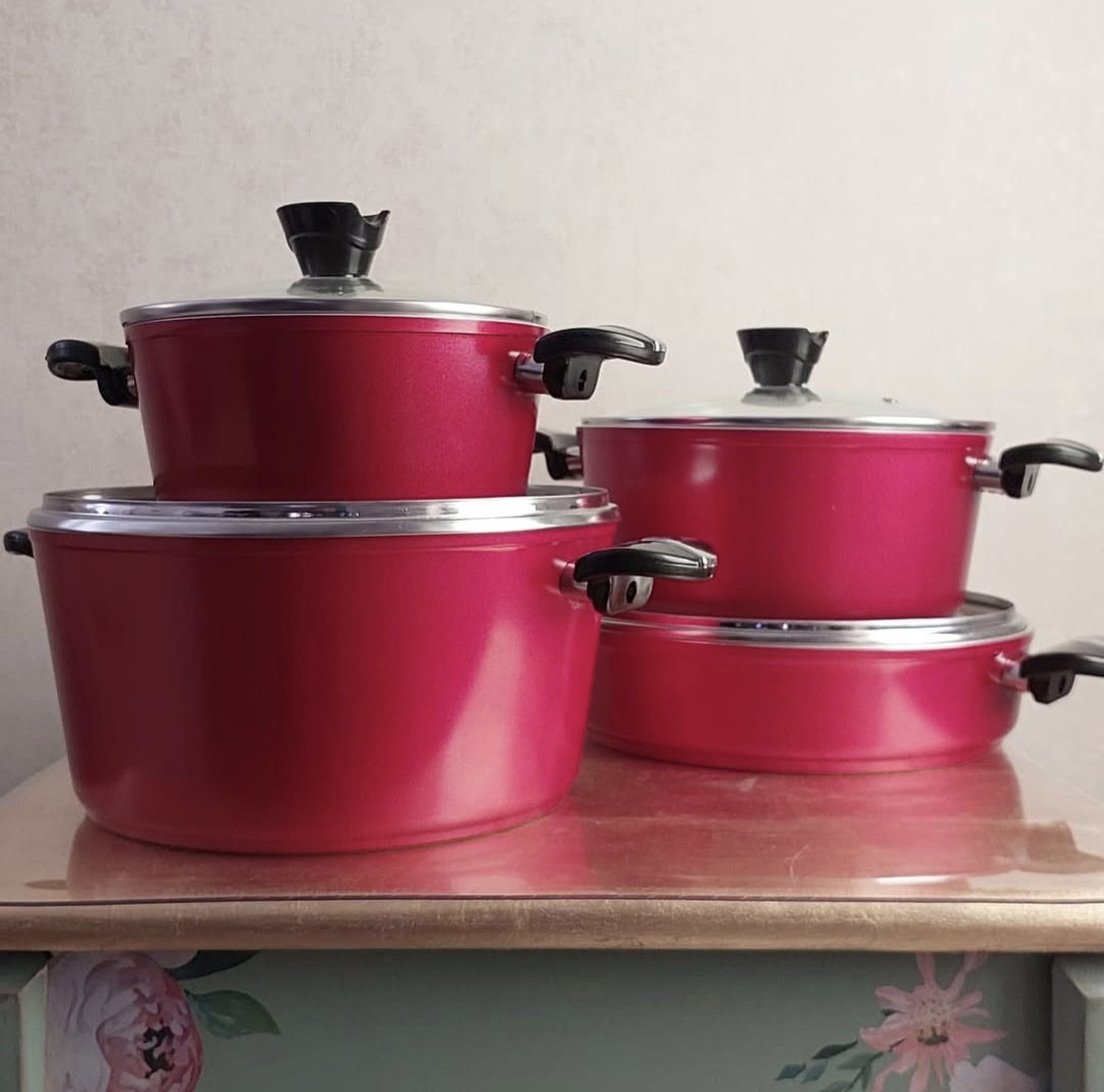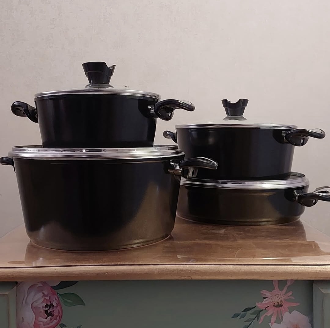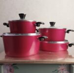 این ست جذاب شامل ۳ قابلمه و ۱ ماهیتابه دو دسته می باشد.