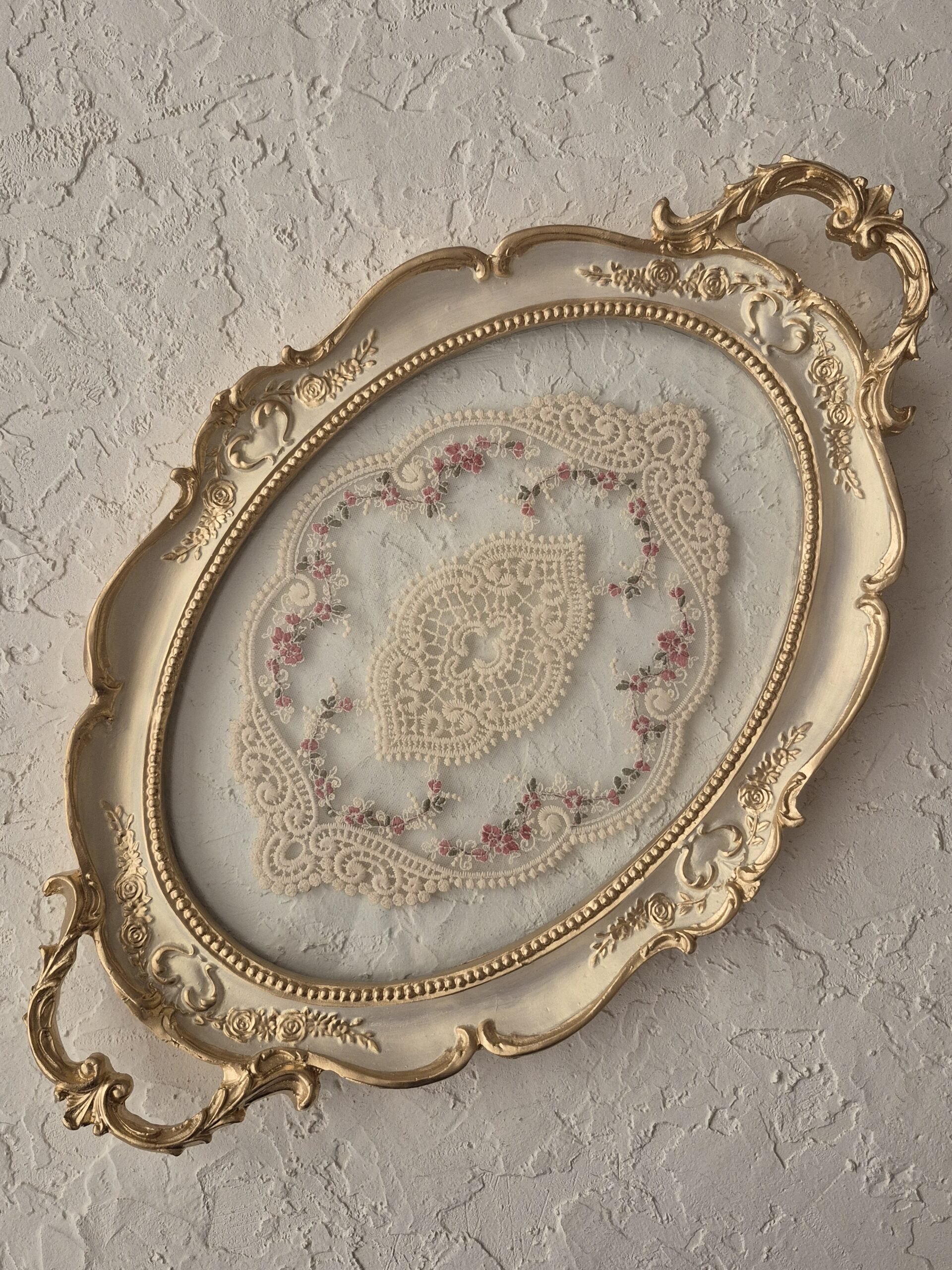 سینی دانتل مدل فرانسوی 02 با طراحی بیضیشکل و لبههای توریمانند، یک انتخاب خاص برای افرادیست که به زیبایی و ظرافت در دکور منزل اهمیت میدهند. این سینی نهتنها برای سرو چای و شیرینی فوقالعادهست، بلکه بهعنوان یک پایهی دکوراتیو برای عطر، شمع، یا اکسسوریها روی میز آرایش یا کنسول نیز جلوهای بسیار شیک و اروپایی ایجاد میکند. اگر دنبال یک آیتم دکوری هستی که هم کارایی داشته باشه و هم استایل خونهتو خاصتر کنه، این سینی دانتل دقیقا همون چیزیه که نیاز داری.