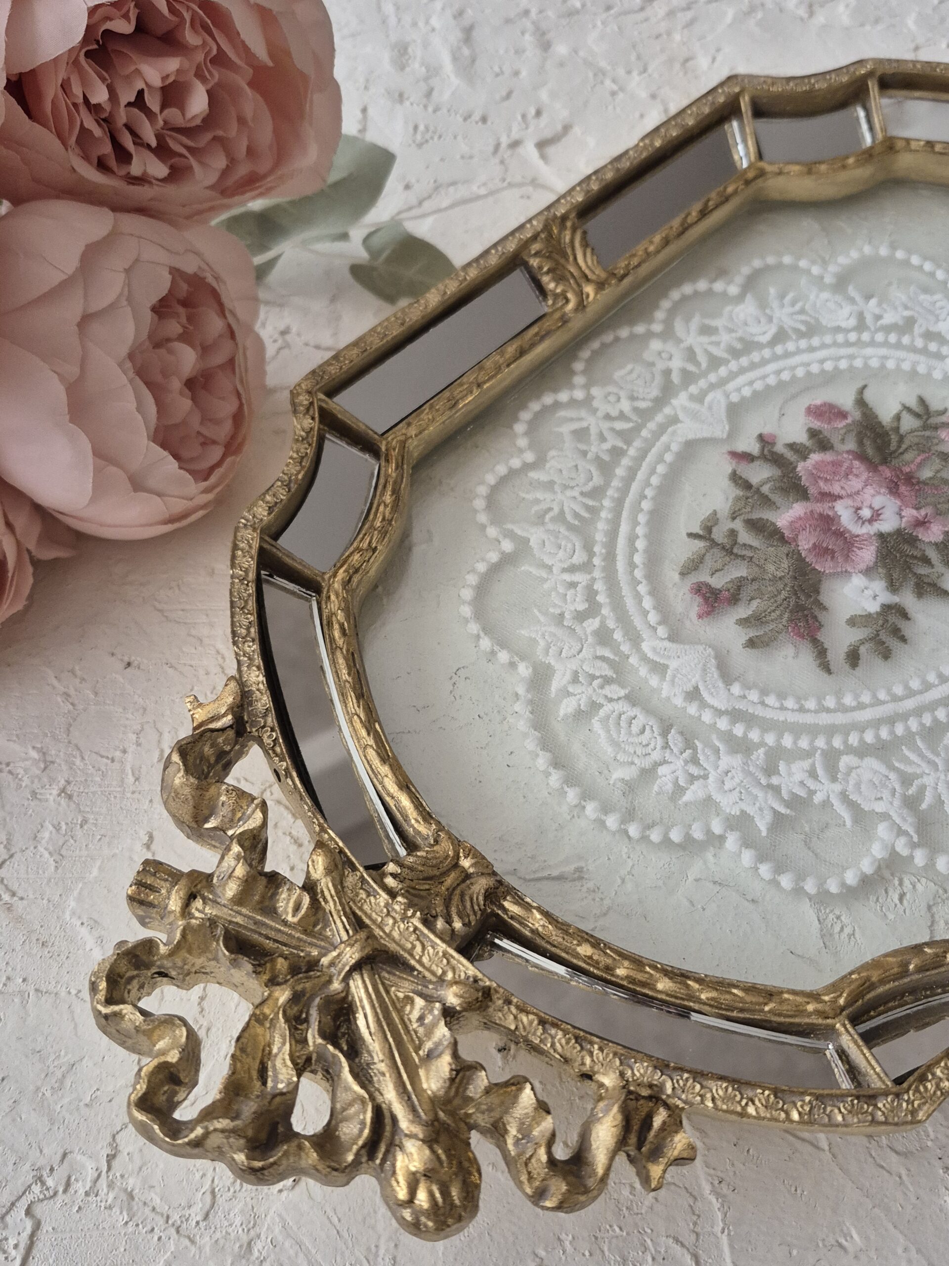 سینی کف دانتل ترک دسته پاپیون دور آینه