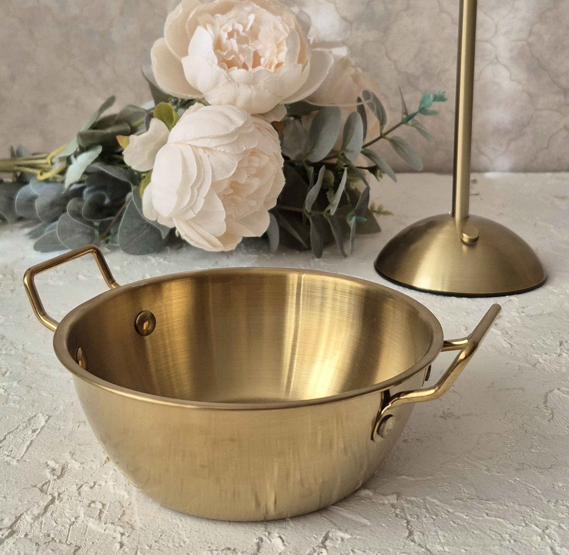 ظروف زیبای استیل طلایی مدل کاسه دو دسته
