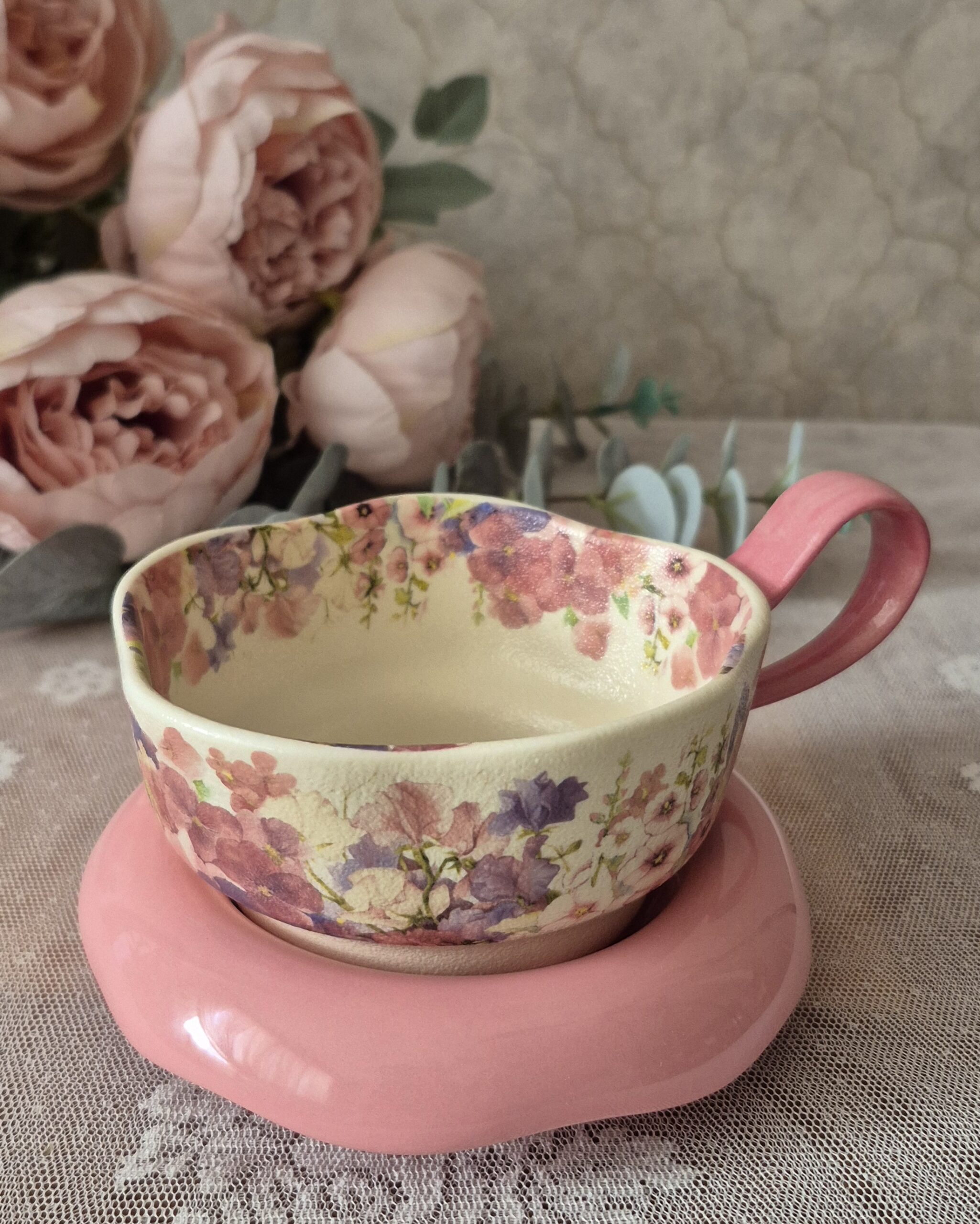 فنجان نعلبکی سرامیک گلدار