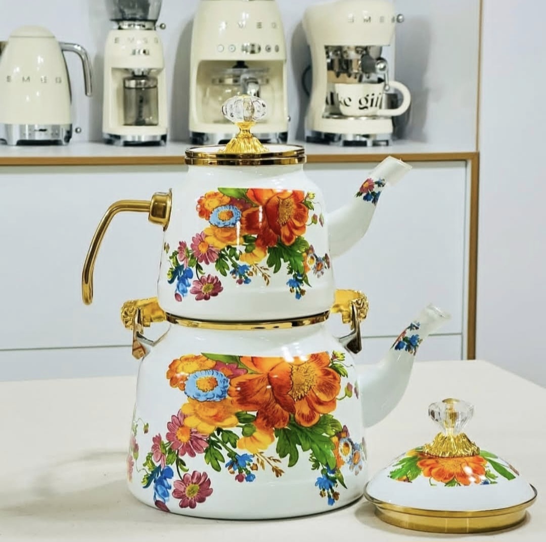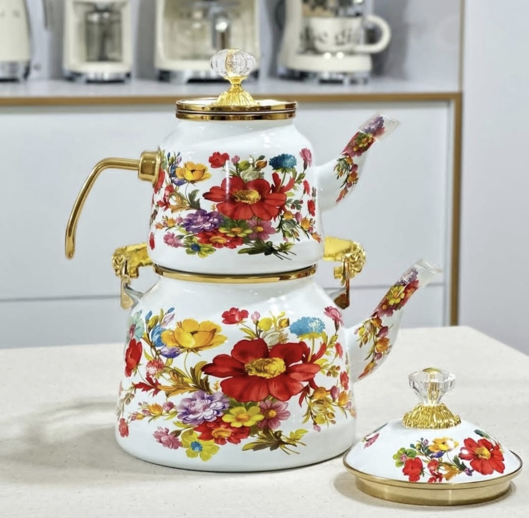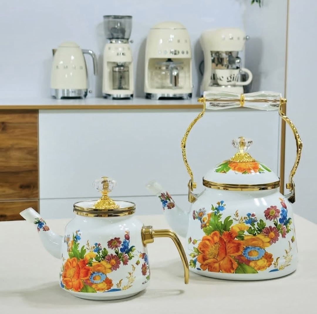کتری قوری بینهایت خاص گلدار با دسته طلایی، ترکیبی بی‌نظیر از هنر سنتی و طراحی مدرن است که جلوه‌ای شیک و لوکس به میز چای شما می‌بخشد. بدنه کتری با طرح‌های گل‌دار زیبا و دسته طلایی رنگ، حس اصالت و ظرافت را در هر بار استفاده منتقل می‌کند. این کتری قوری از مواد باکیفیت ساخته شده که دوام بالا و انتقال حرارت عالی دارد، مناسب برای دم کردن چای خوش‌طعم و لذت‌بخش در هر مهمانی یا استفاده روزمره. اگر دنبال کتری قوری‌ای هستید که هم کاربردی باشد و هم یک اثر هنری برای دکوراسیون آشپزخانه شما، این مدل بینهایت خاص بهترین انتخاب است