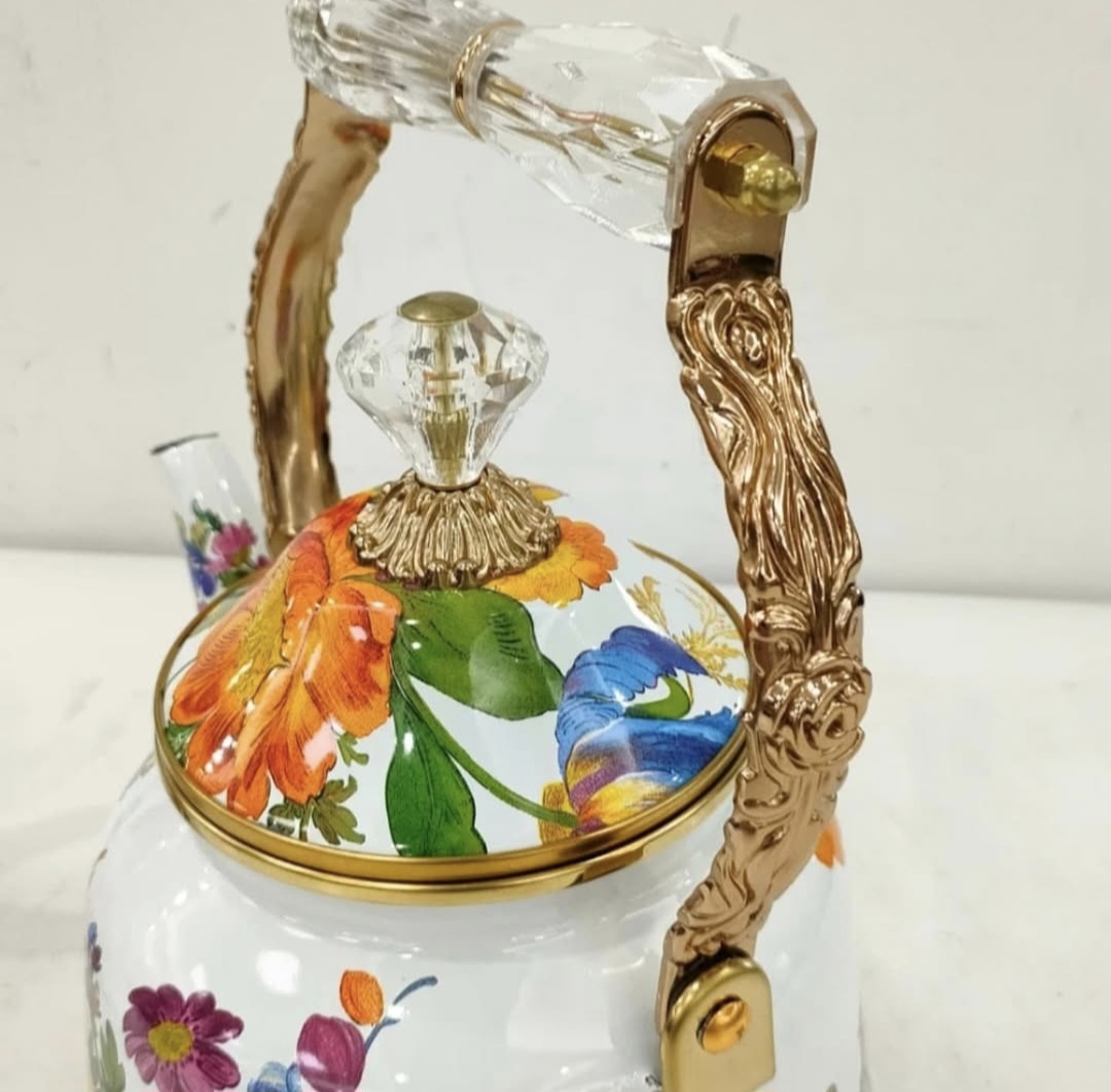 کتری قوری بینهایت خاص گلدار با دسته طلایی