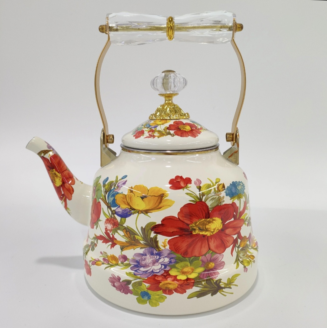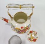 کتری لعابی گلدار با دسته طلایی حجم ۲/۵ لیتر